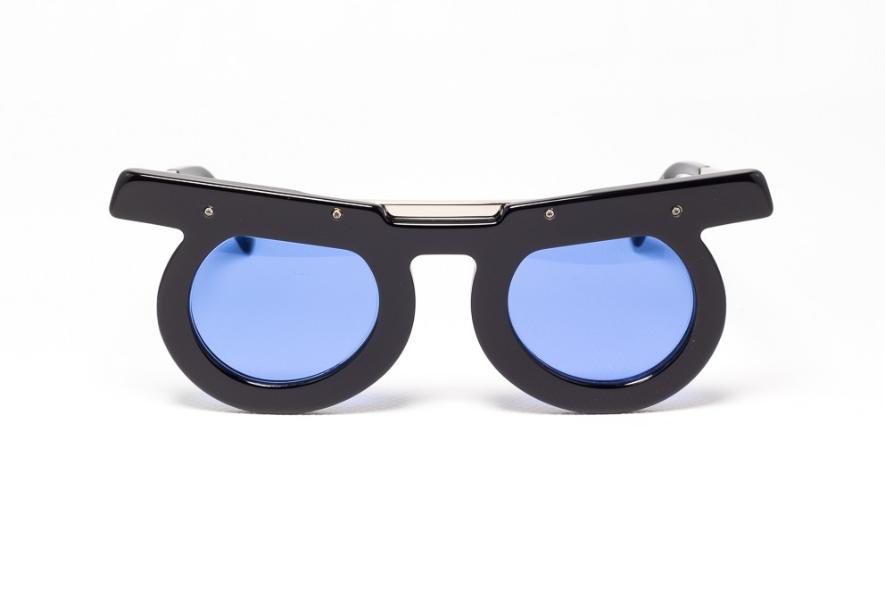 Combinato Frontale Nero Aste in Metallo Filtri Solari Azzurro Edizione Limitata